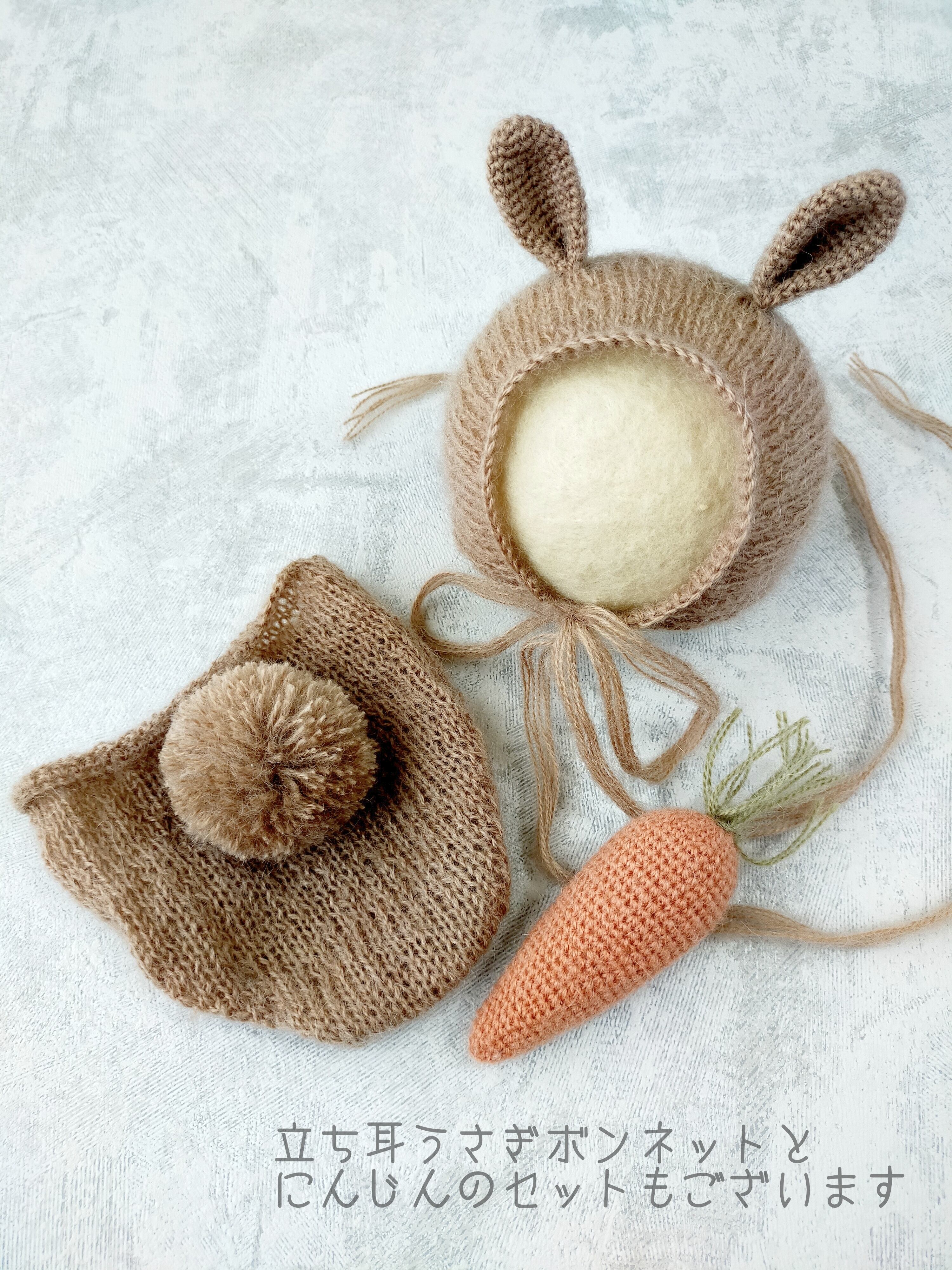 ○垂れ耳うさぎボンネットとにんじんの3点セット