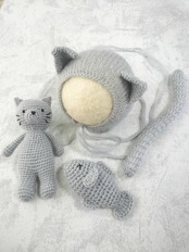 ニューボーンフォト用のボンネットとあみぐるみです。